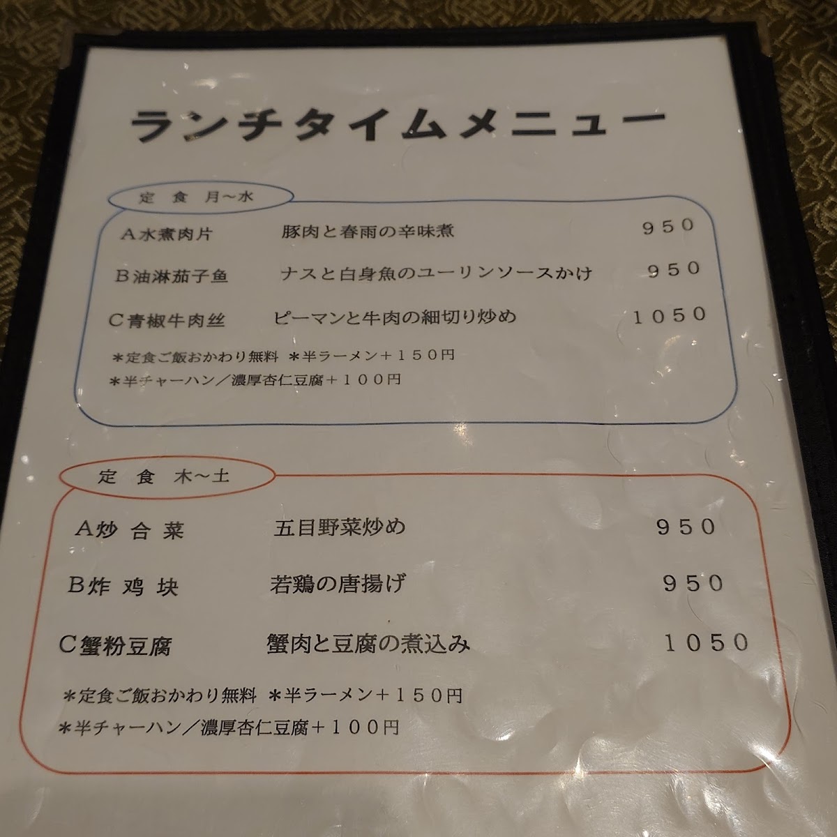 For a bento-style meal, the エビ玉子弁当 (Shrimp and Egg Bento) is an excellent choice, packed with tender shrimp and a soft, scrambled egg topping. If you're craving something luxurious, the フカヒレ (Shark Fin) is a premium dish that's sure to impress. The 八宝菜 辛味噌炒 定食 (Eight-Treasure Stir-Fry with Spicy Miso Set) brings a bold, spicy kick to the meal, while the 東坡肉 (Dongpo Pork) offers a rich, melt-in-your-mouth experience.